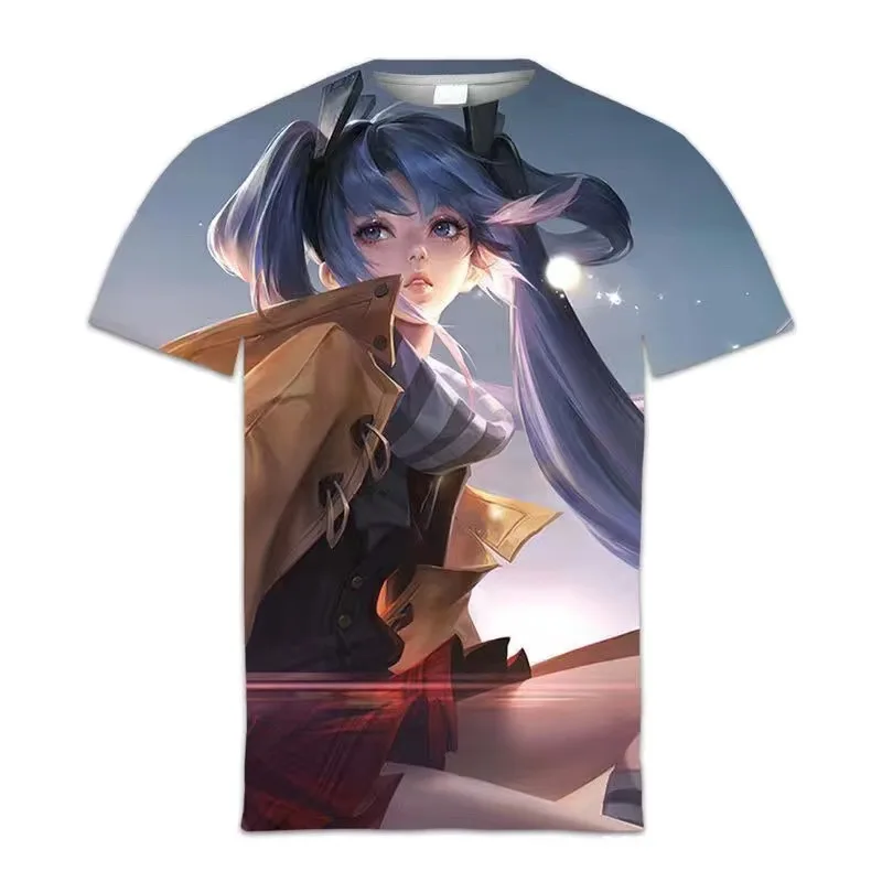 Evertop Custom Logo 3D Digital Printed Breathable Polyester Anime T-shirt for Men Women and Kids Short Sleeve O-Neck